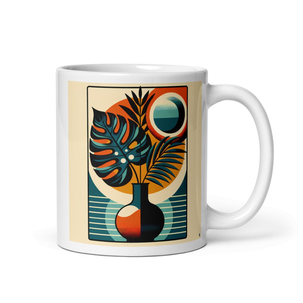 Geometric Tropical Leaves in Vase — Mug