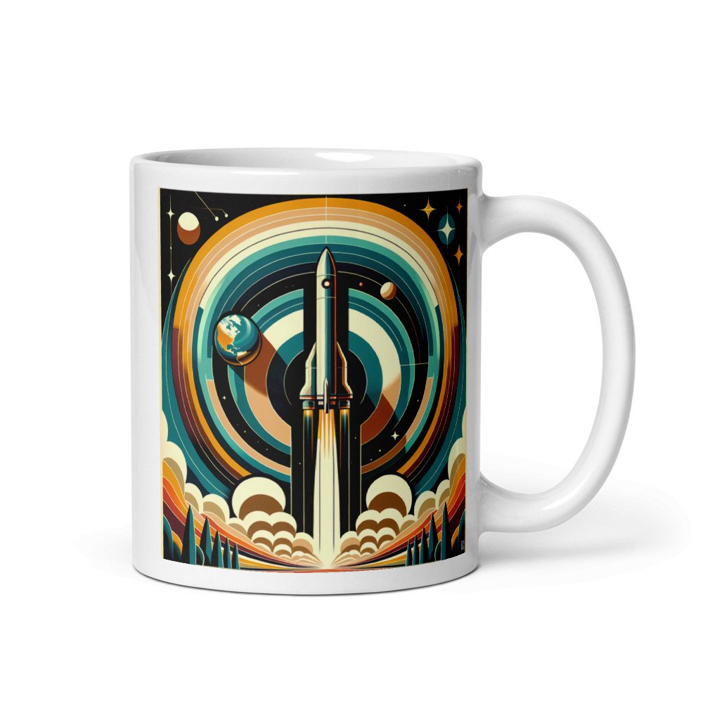 Retro Rocket Launch Geometric Space Illustration — Mug