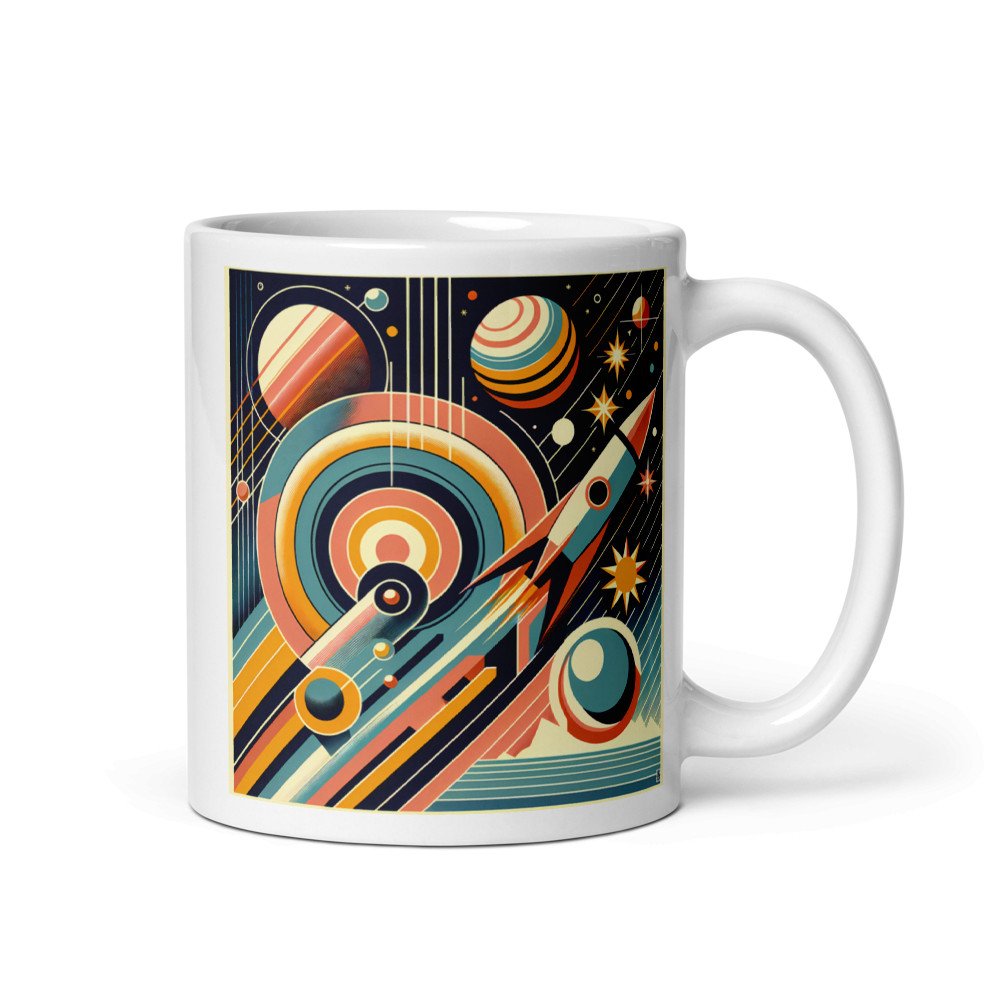 Orbital DriftGeometric Rocket in Retro Space — Mug