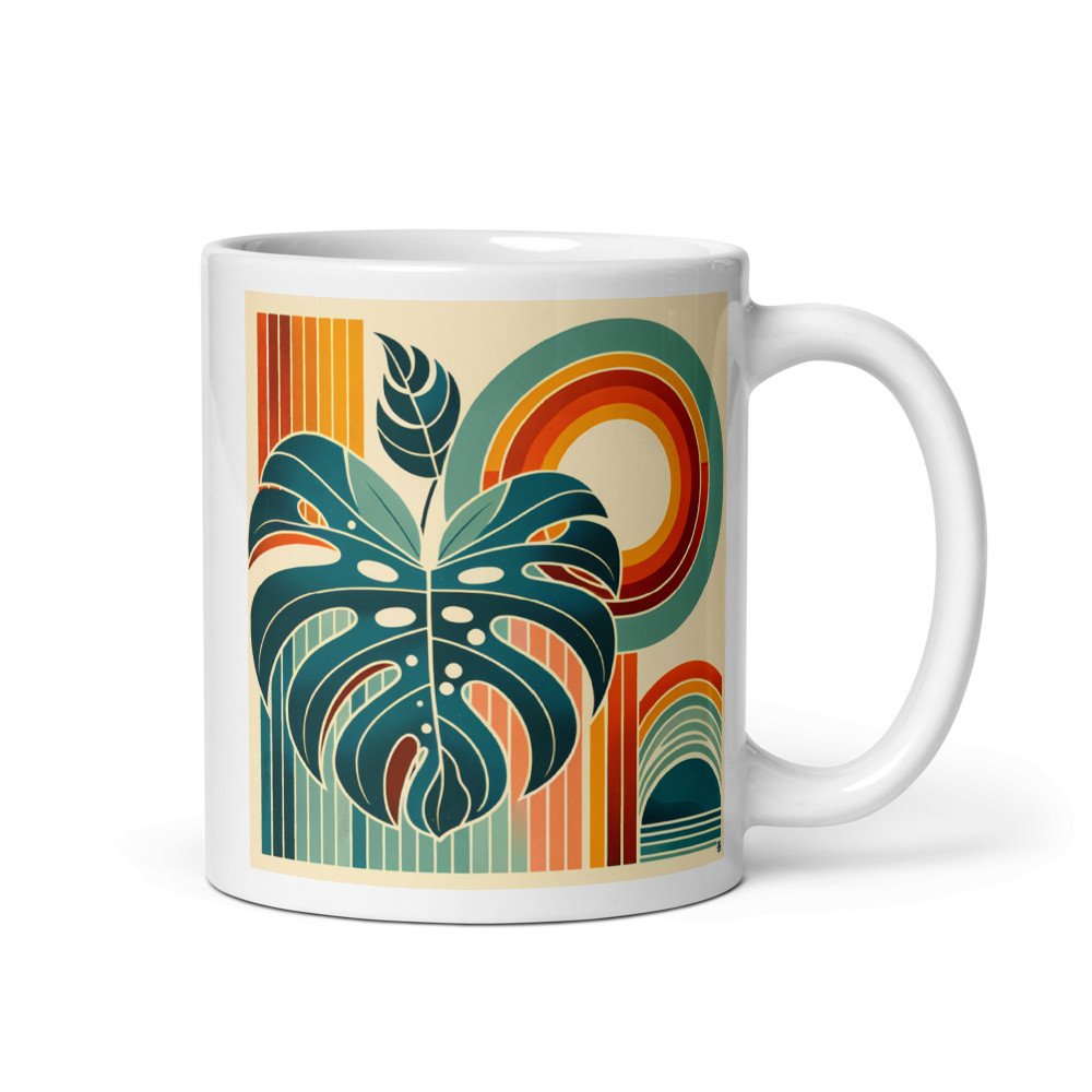 Geometric Monstera with Retro Sun Arches — Mug