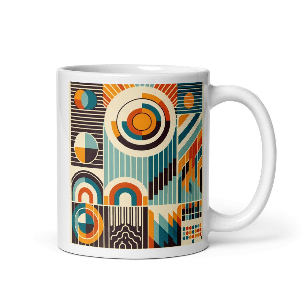 Canyon AriaRetro Geometric Circles and Stripes Composition — Mug