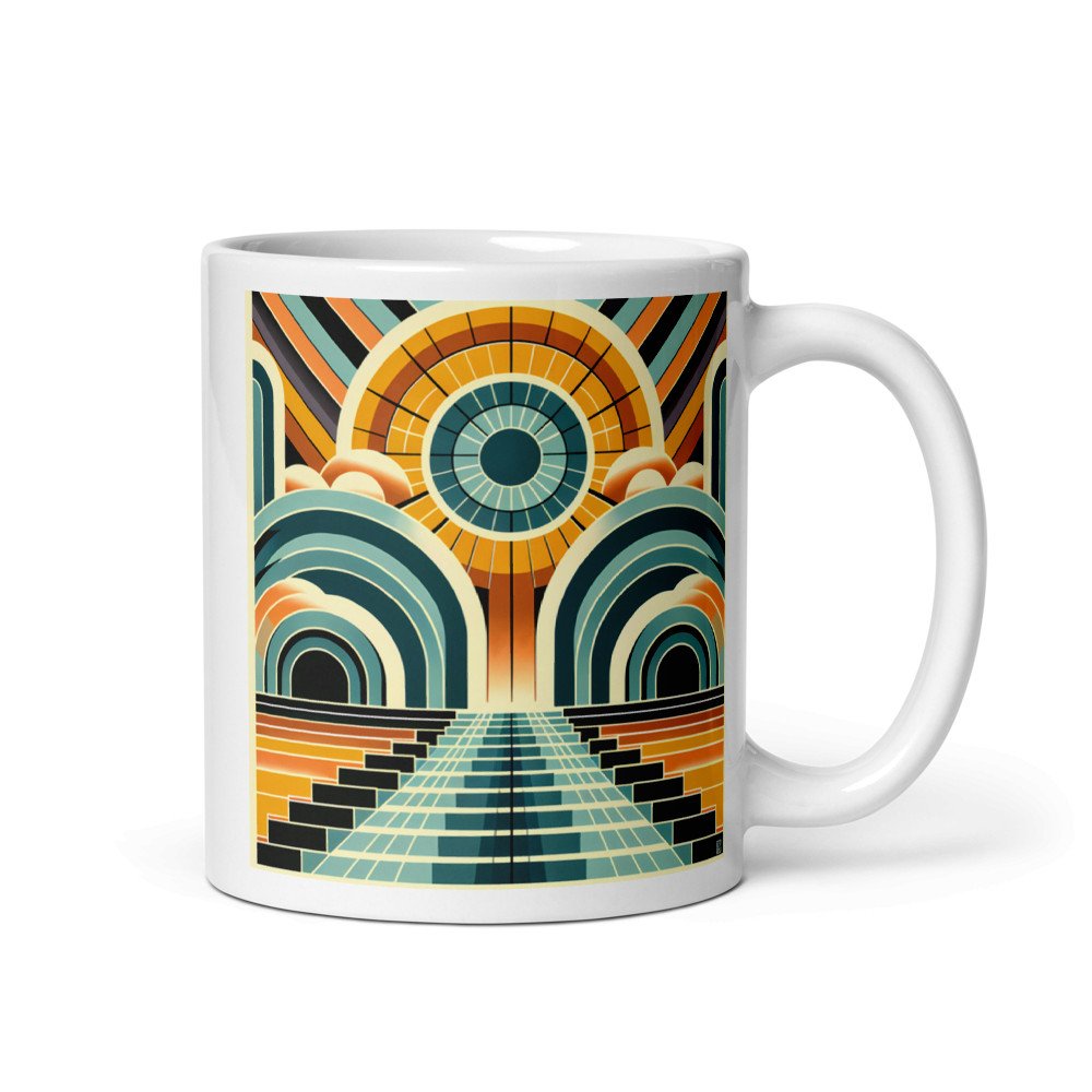 Amber ArcadeGeometric Sunburst Arches and Stairway — Mug