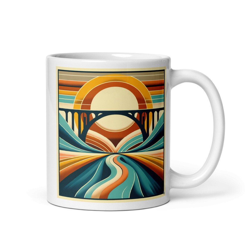 Riverlight HavenRetro Bridge at Sunrise Landscape — Mug