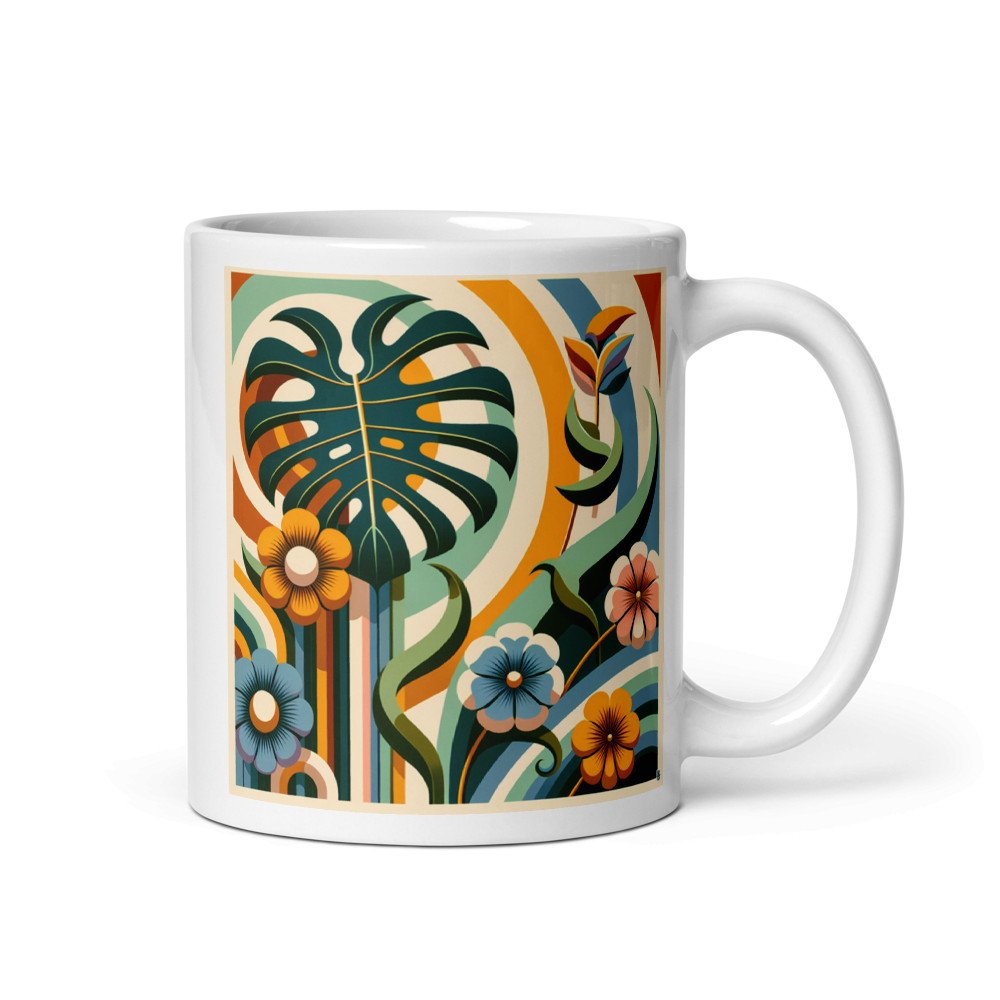 Saffron CanopyAbstract Botanical Leaves and Flowers — Mug