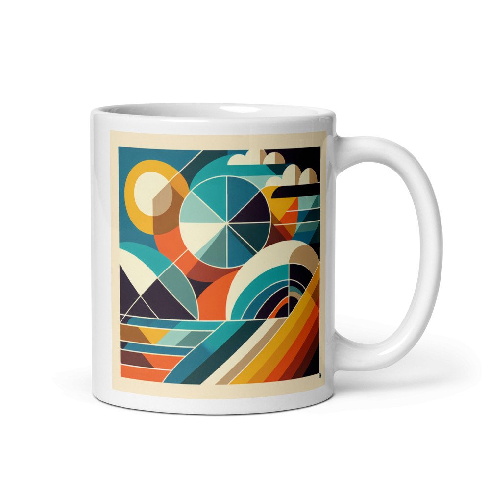 Coastal AscendancyRetro Geometric Abstract with Teal and Orange — Mug