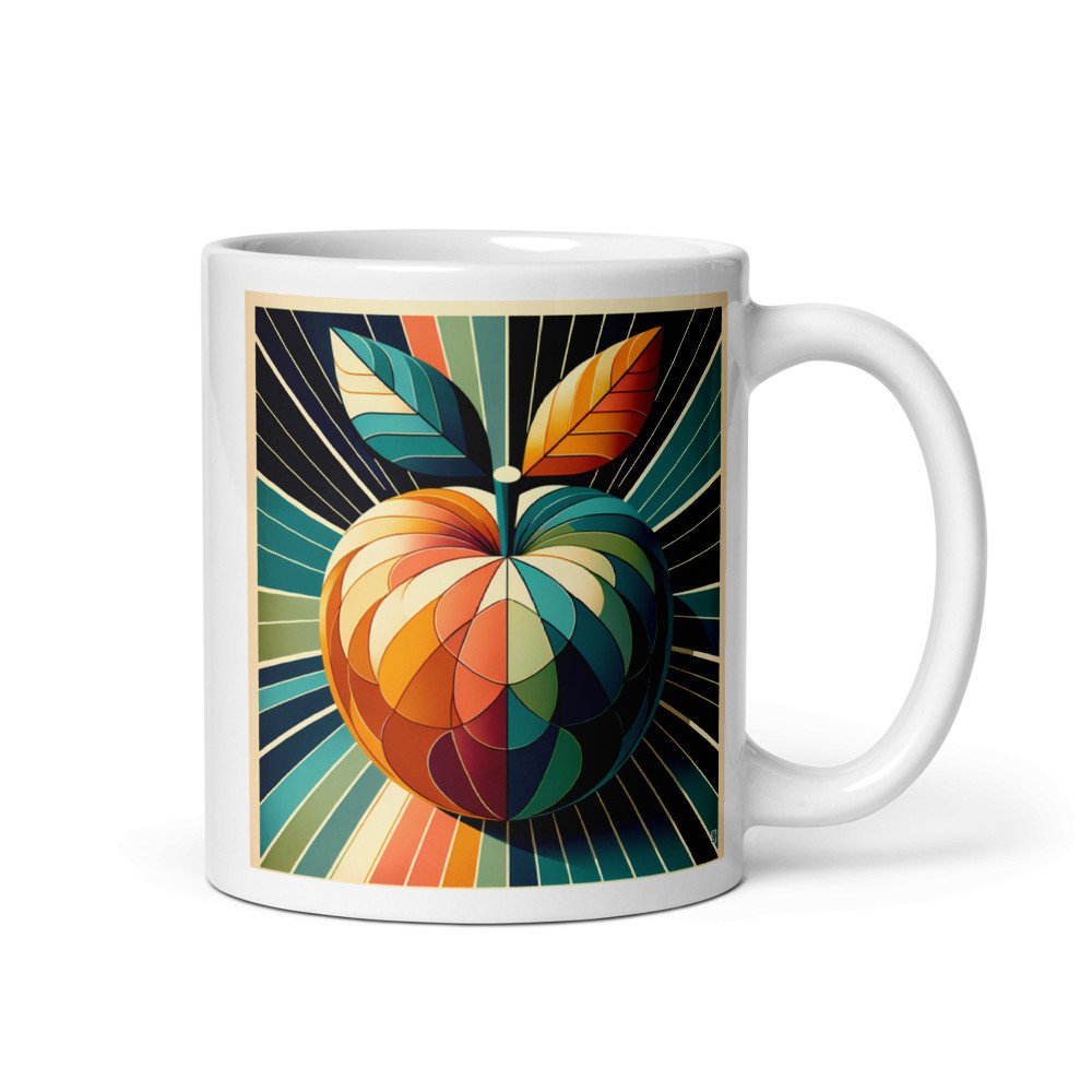 Retro Geometric Apple Sunburst in Teal and Orange — Mug