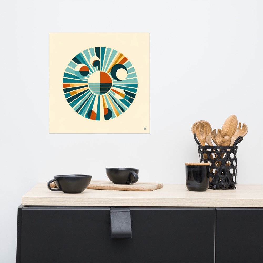Solar CrestRetro Geometric Sunburst Circles in Teal and Orange — Poster