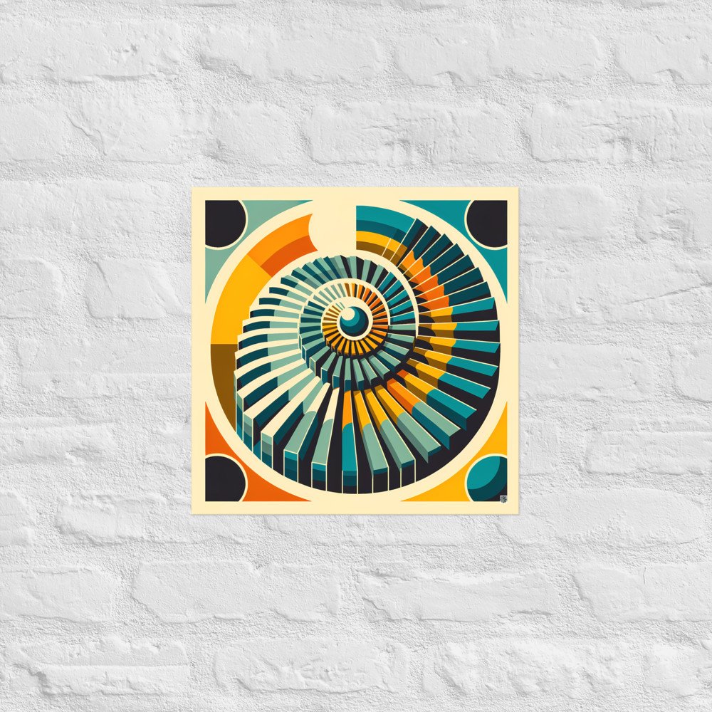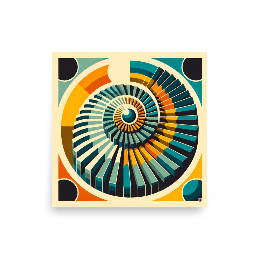 Orbiting PrismRetro Geometric Spiral Sunburst in Teal and Orange — Poster