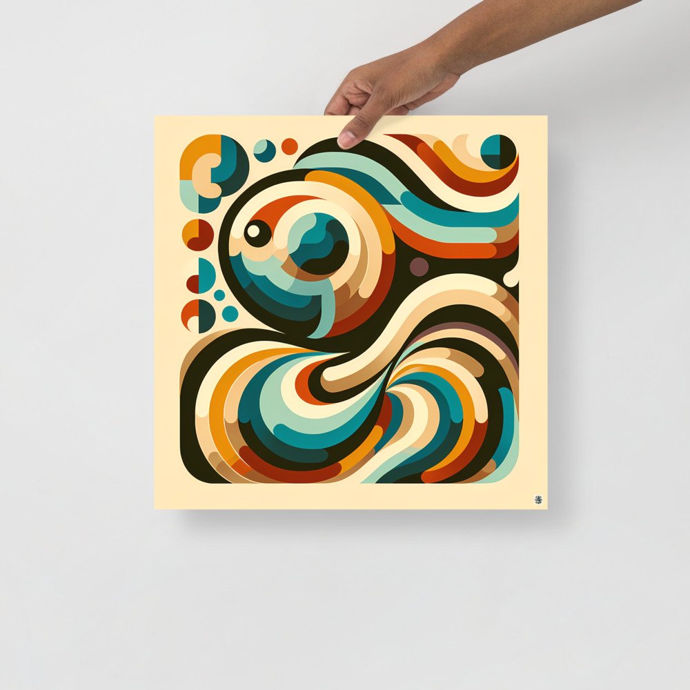 Aquatic ReverieRetro Abstract Swirl Waves in Teal and Ochre — Poster