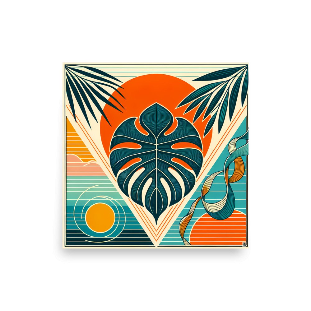Tropical AnomalyGeometric Monstera Leaf Sunset — Poster