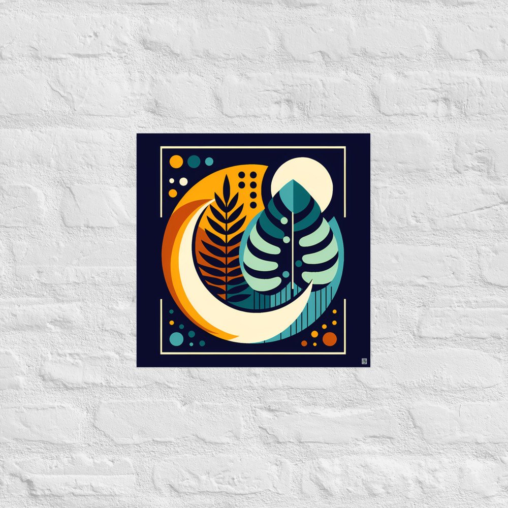 Lunar TropicsAbstract Monstera Leaves with Moon and Sun Shapes — Poster