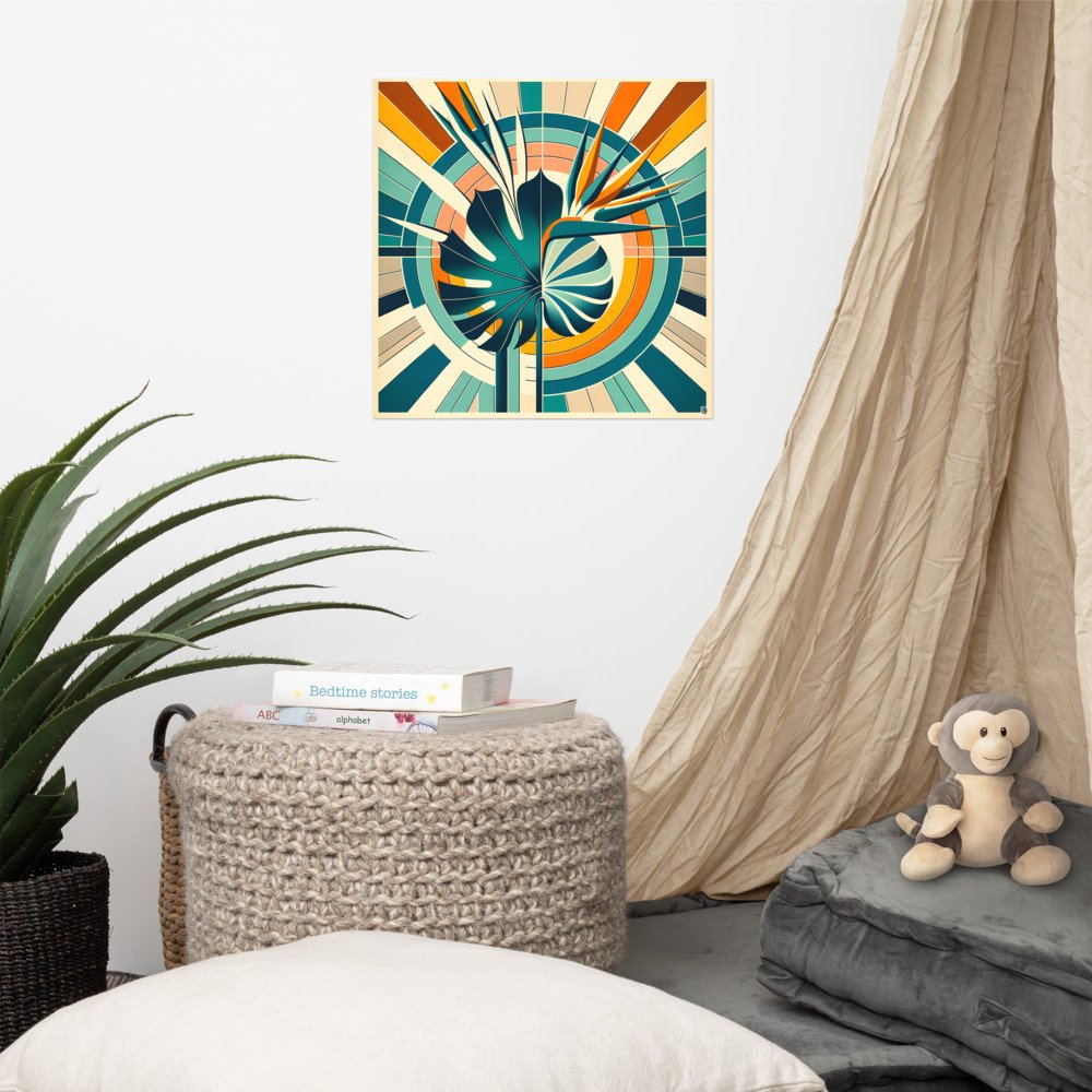 Tropical RadianceGeometric Monstera Leaf with Bird of Paradise — Poster