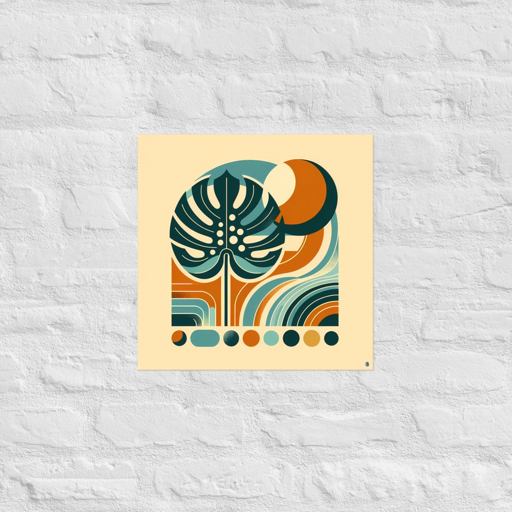 Canopy GroveAbstract Monstera Leaf with Retro Geometric Shapes — Poster