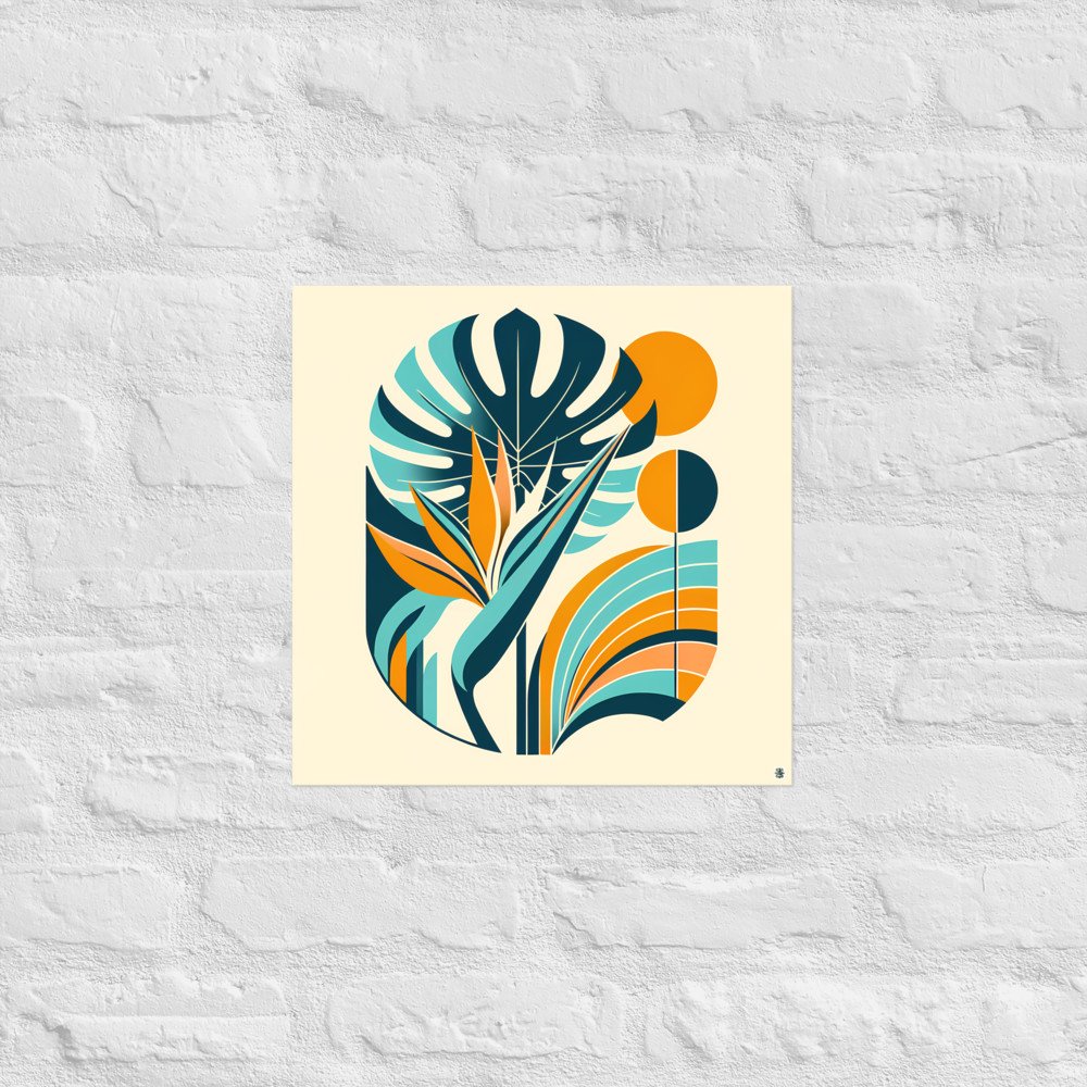 Abstract Tropical Leaves in Teal and Orange — Poster