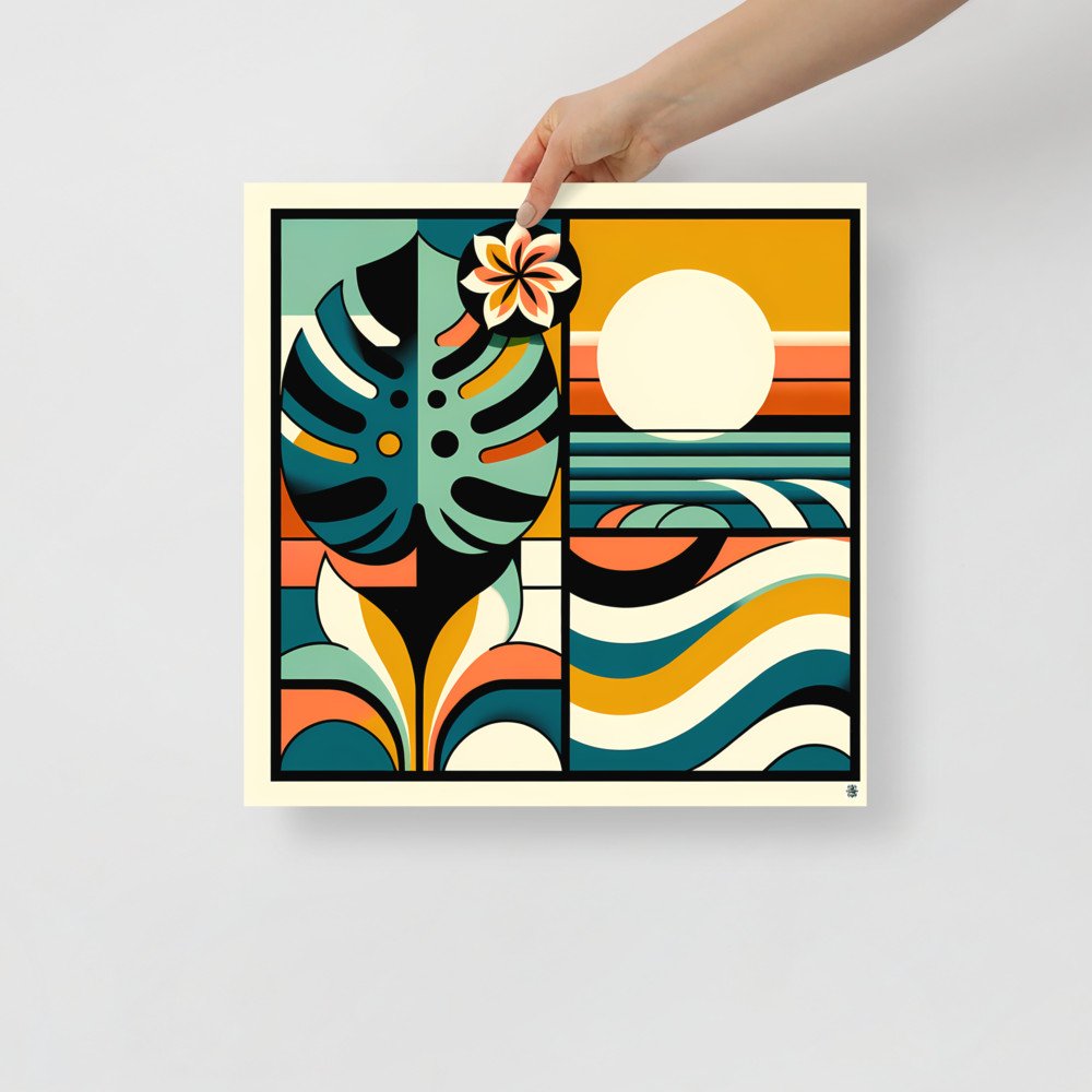 Abstract Monstera Leaf and Sun Geometric Waves — Poster
