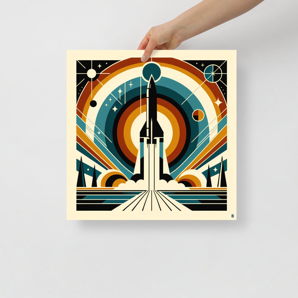 Retro Geometric Rocket Launch — Poster