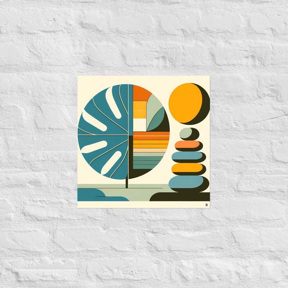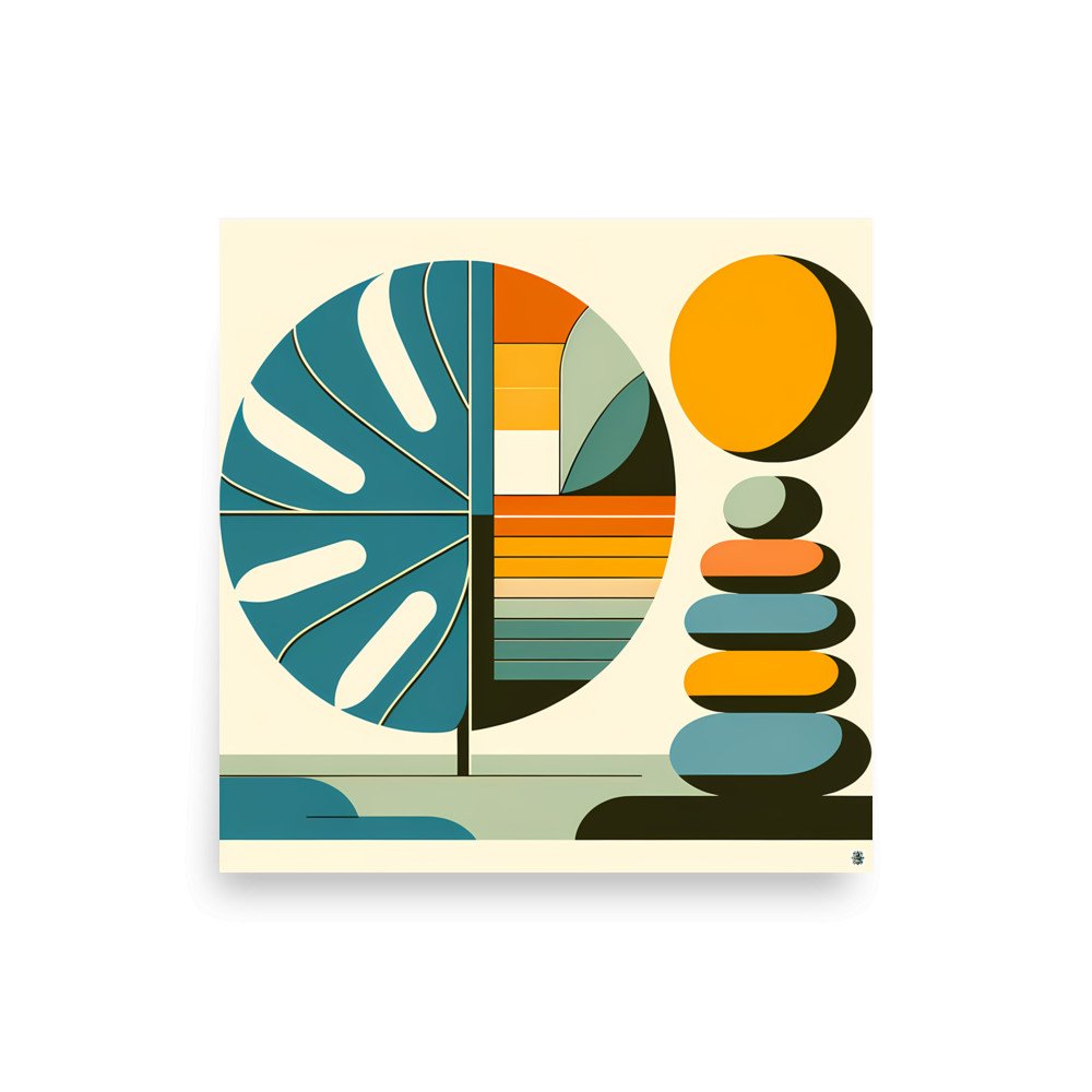 Geometric Monstera Leaf and Stacked Stones — Poster