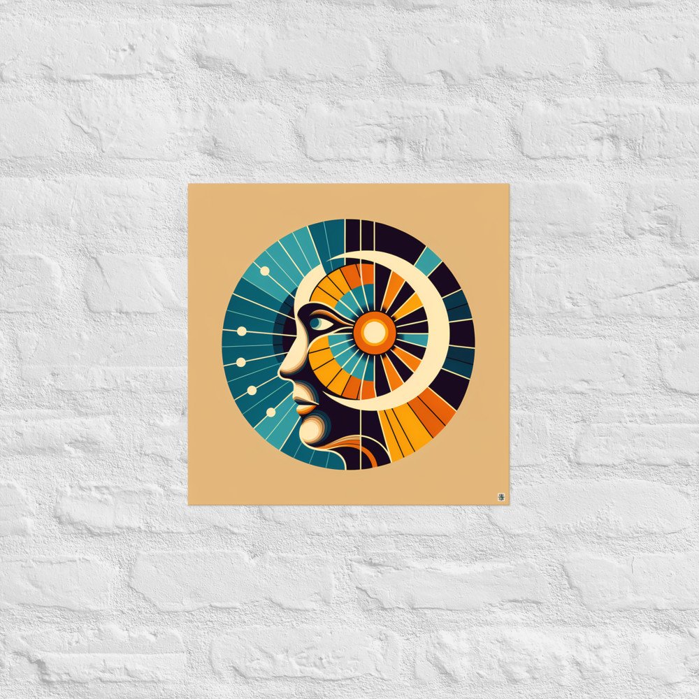 Geometric Abstract Face with Radiating Sunburst — Poster