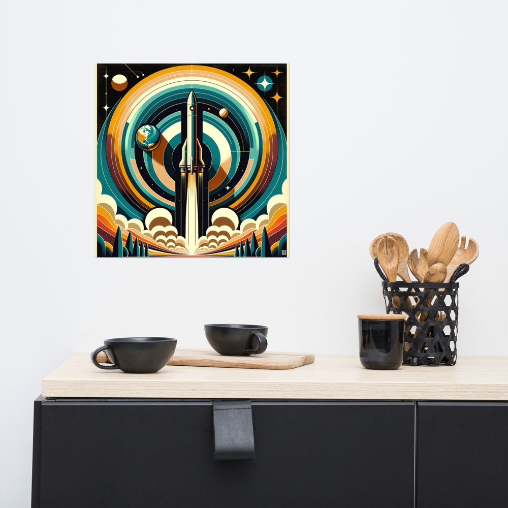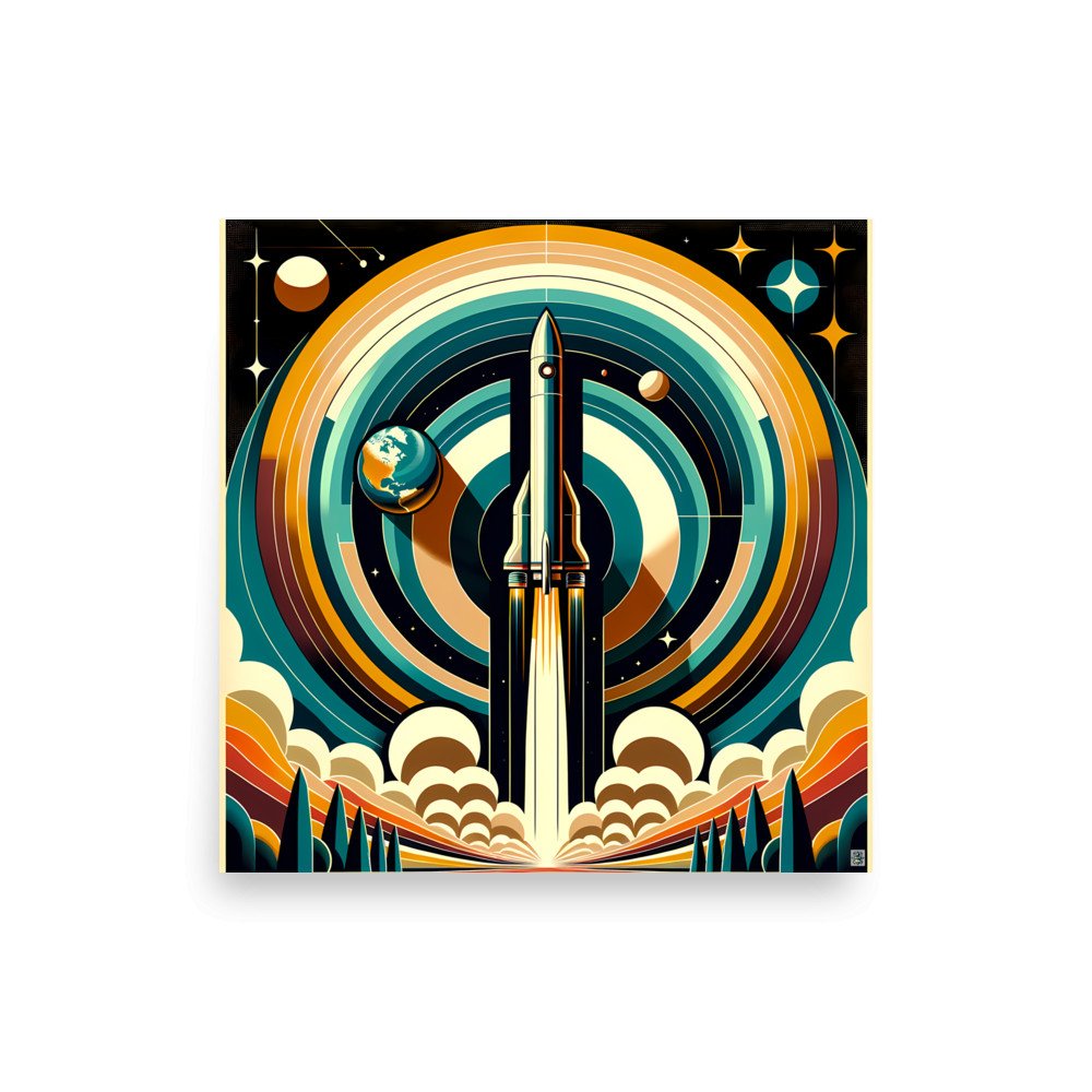 Retro Rocket Launch Geometric Space Illustration — Poster