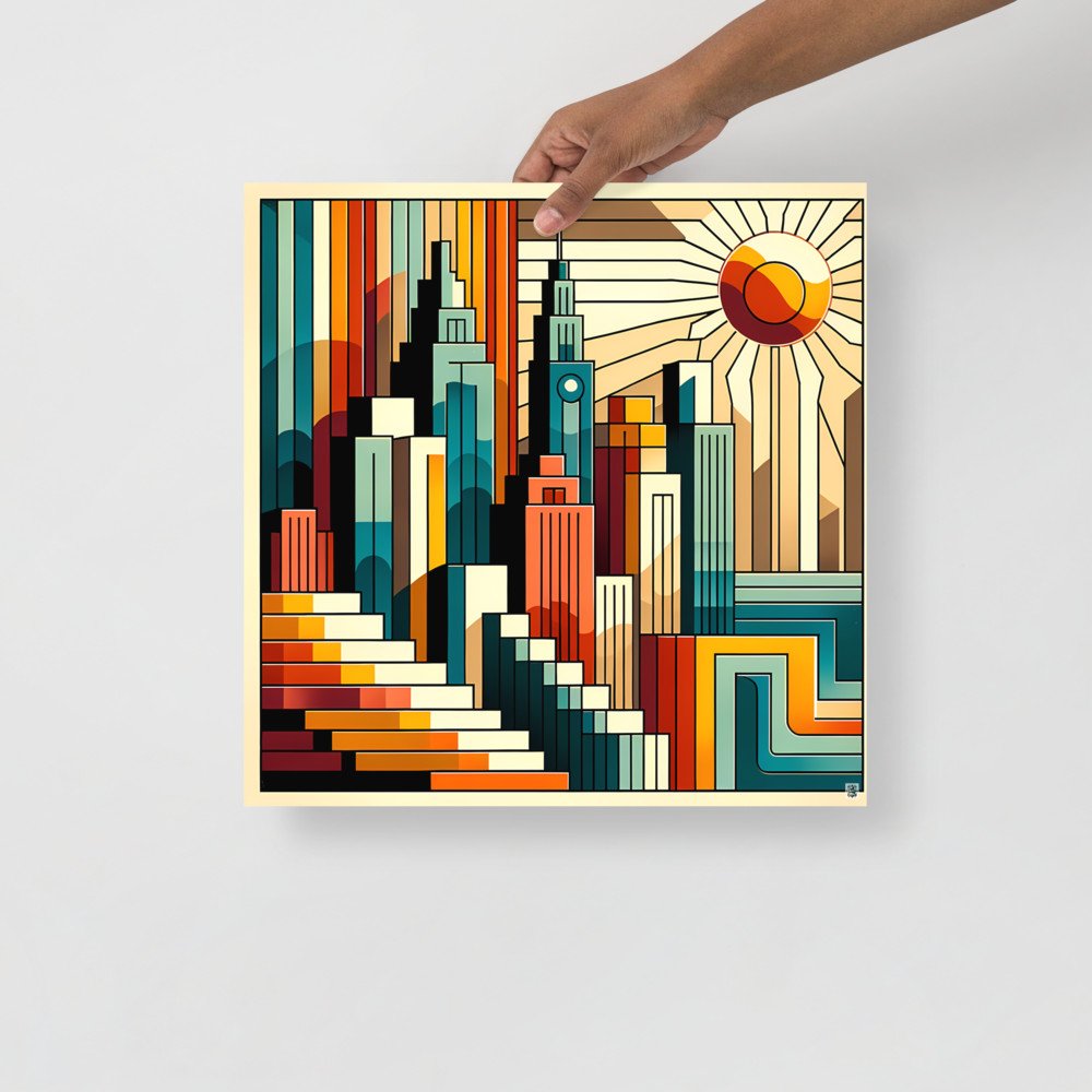 Geometric City Skyline at Sunset — Poster