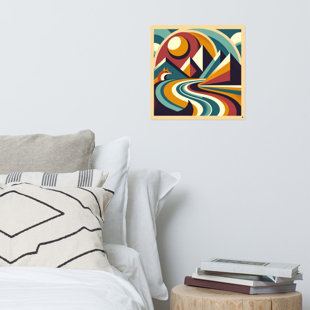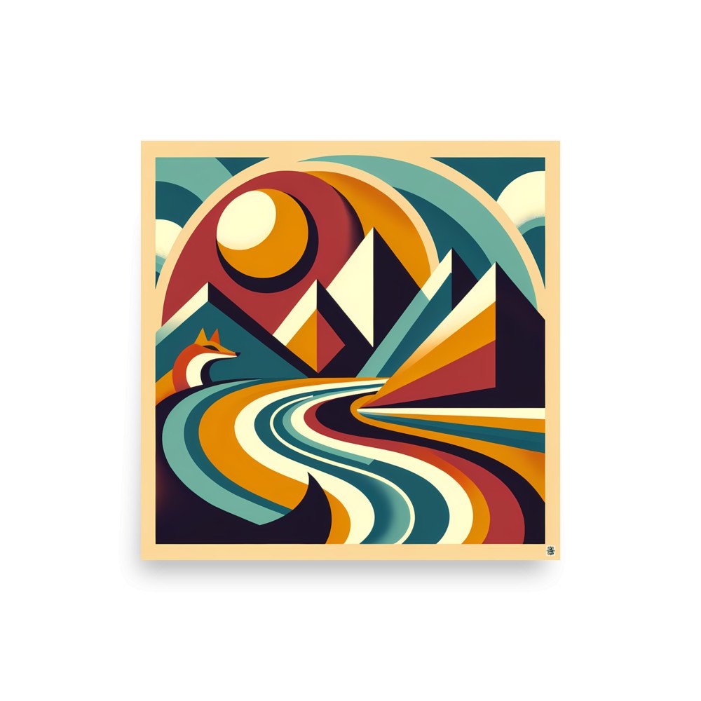 Foxfire MesaGeometric Mountain Landscape with Fox and Sun — Poster