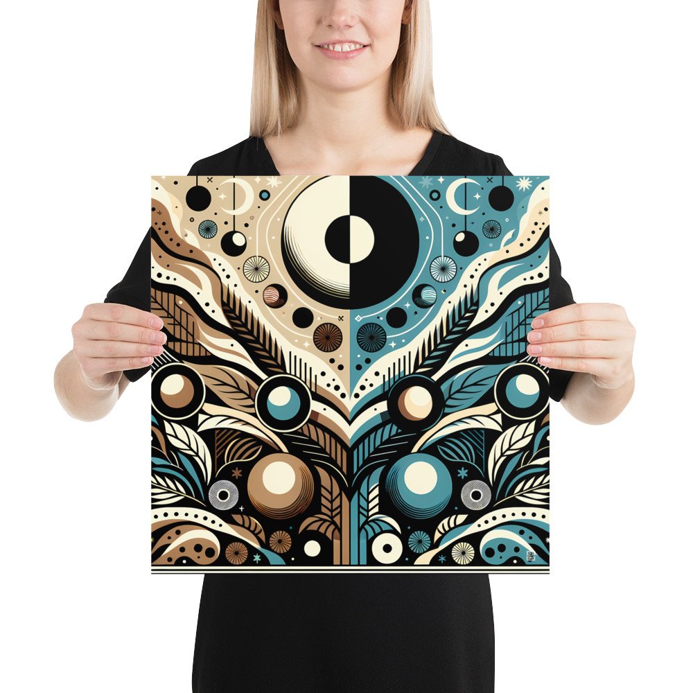Retro Sun and Moon Geometric Botanical Abstract — Poster