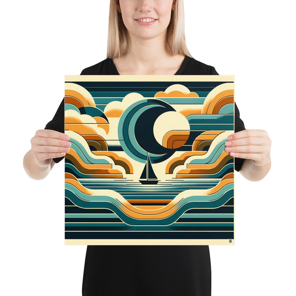 Evening Caravel VIIGeometric Sailboat at Crescent Moon Sea — Poster