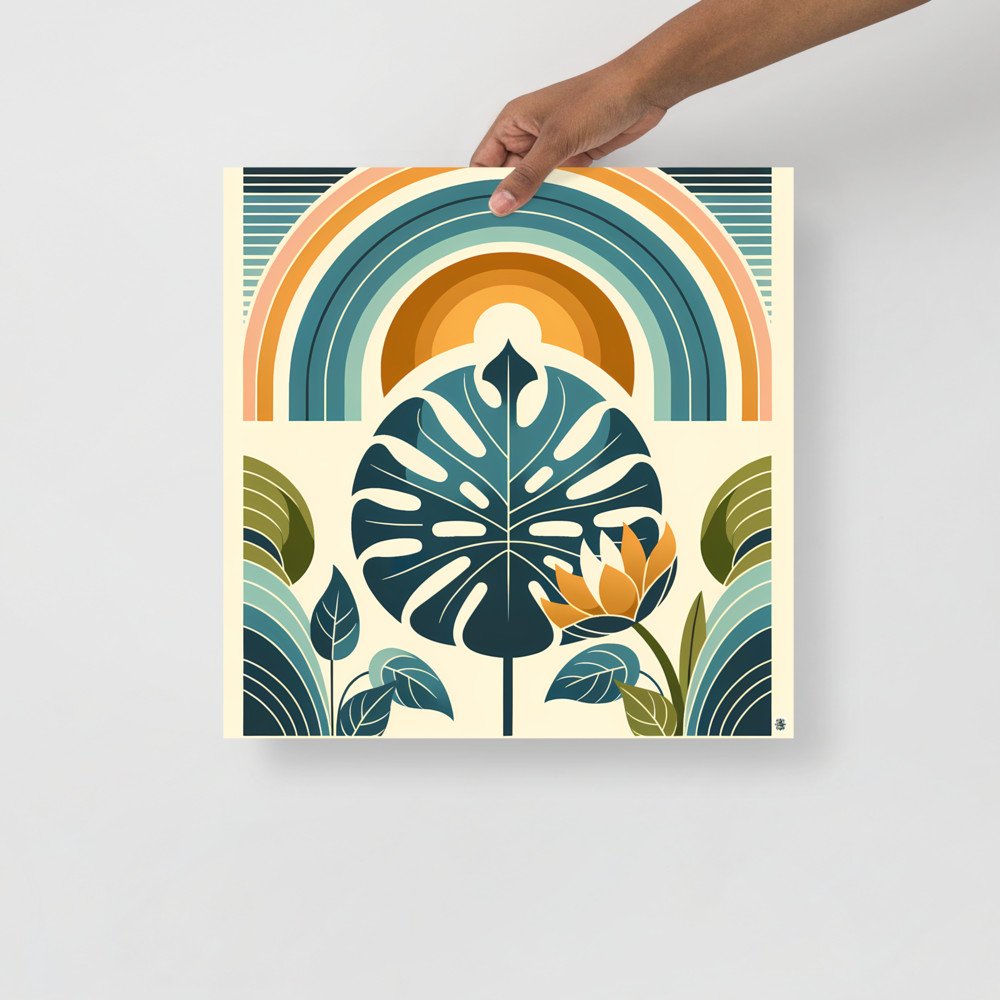 Tropical ArchwayMonstera Leaf with Rainbow Arches Botanical Design — Poster