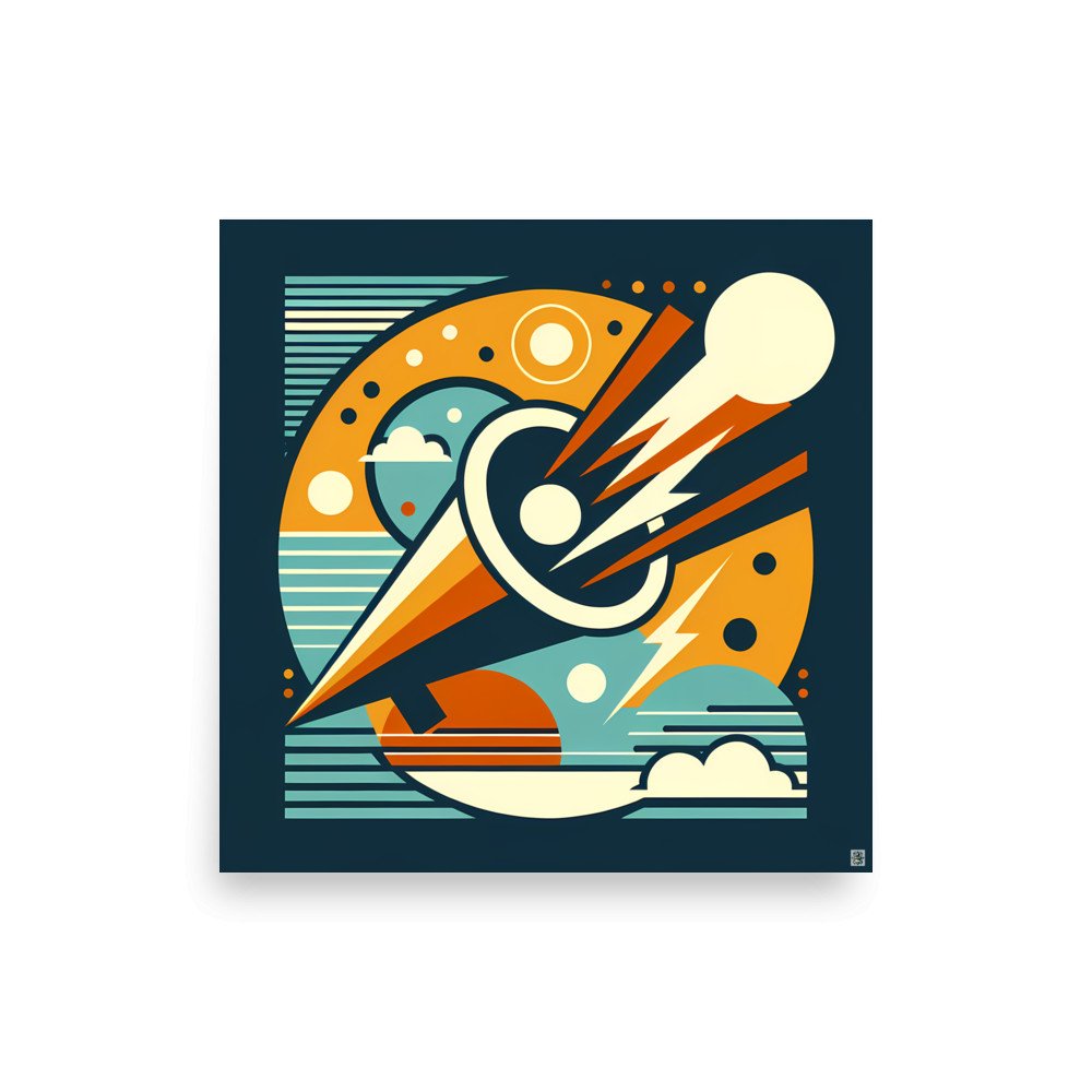 Solar DriftGeometric Comet Through a Retro Space Circle — Poster