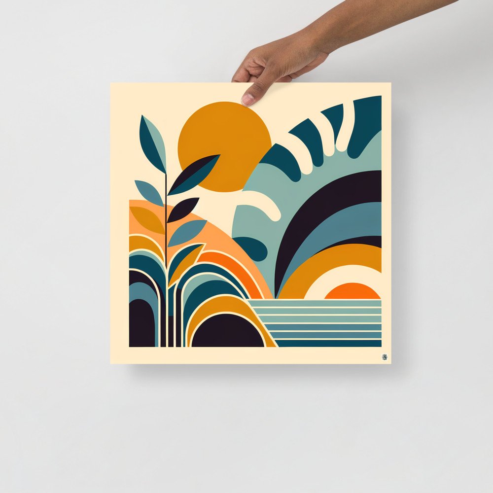 Printed on substantial archival paper, this matte poster presents the abstract floral arrangement with crisp clarity. The design's oversized sun shapes and geometric leaves in a warm palette create a focal point of modern botanical style for your space.