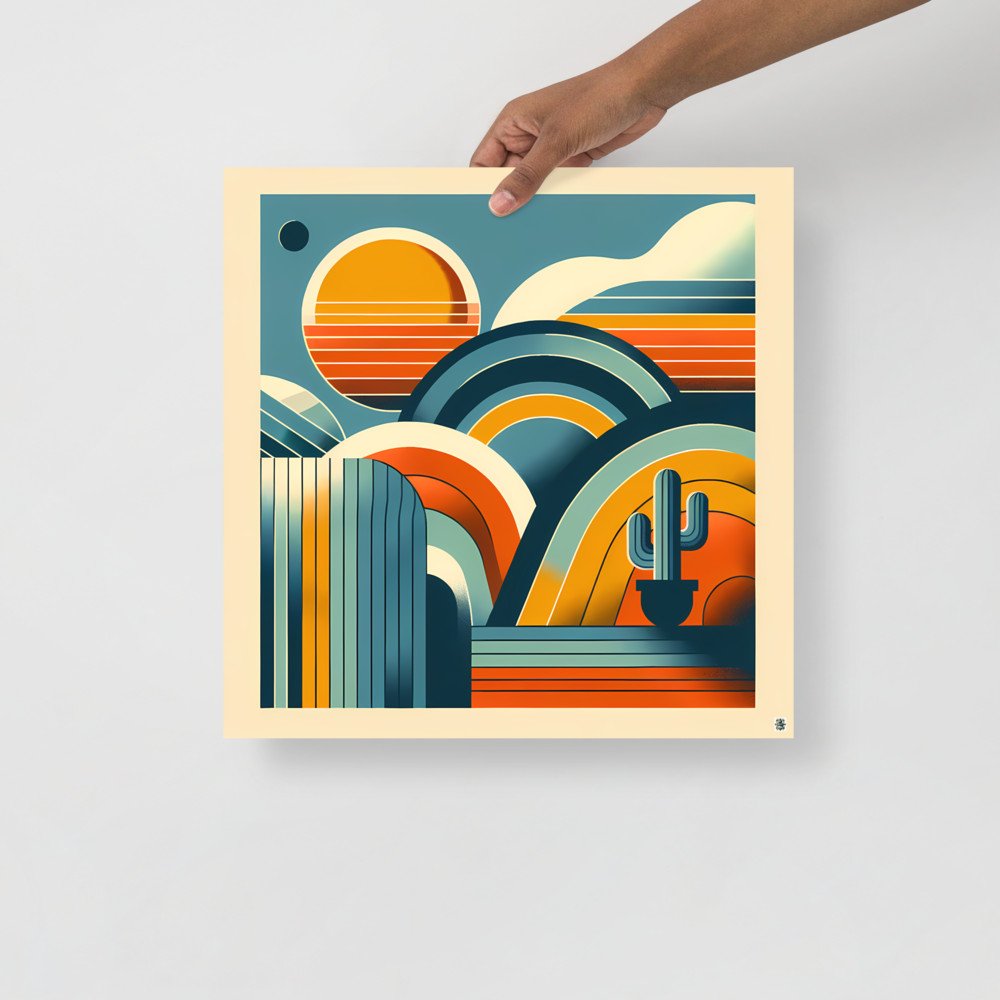 Printed on heavyweight matte paper, this poster captures every detail of the soft grain and clean curves. The archival quality ensures the warm teal and burnt orange hues of the boho-inspired scene remain vivid.