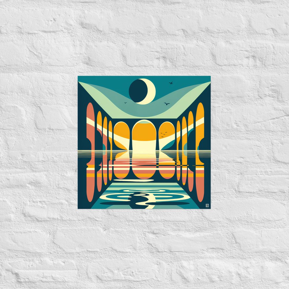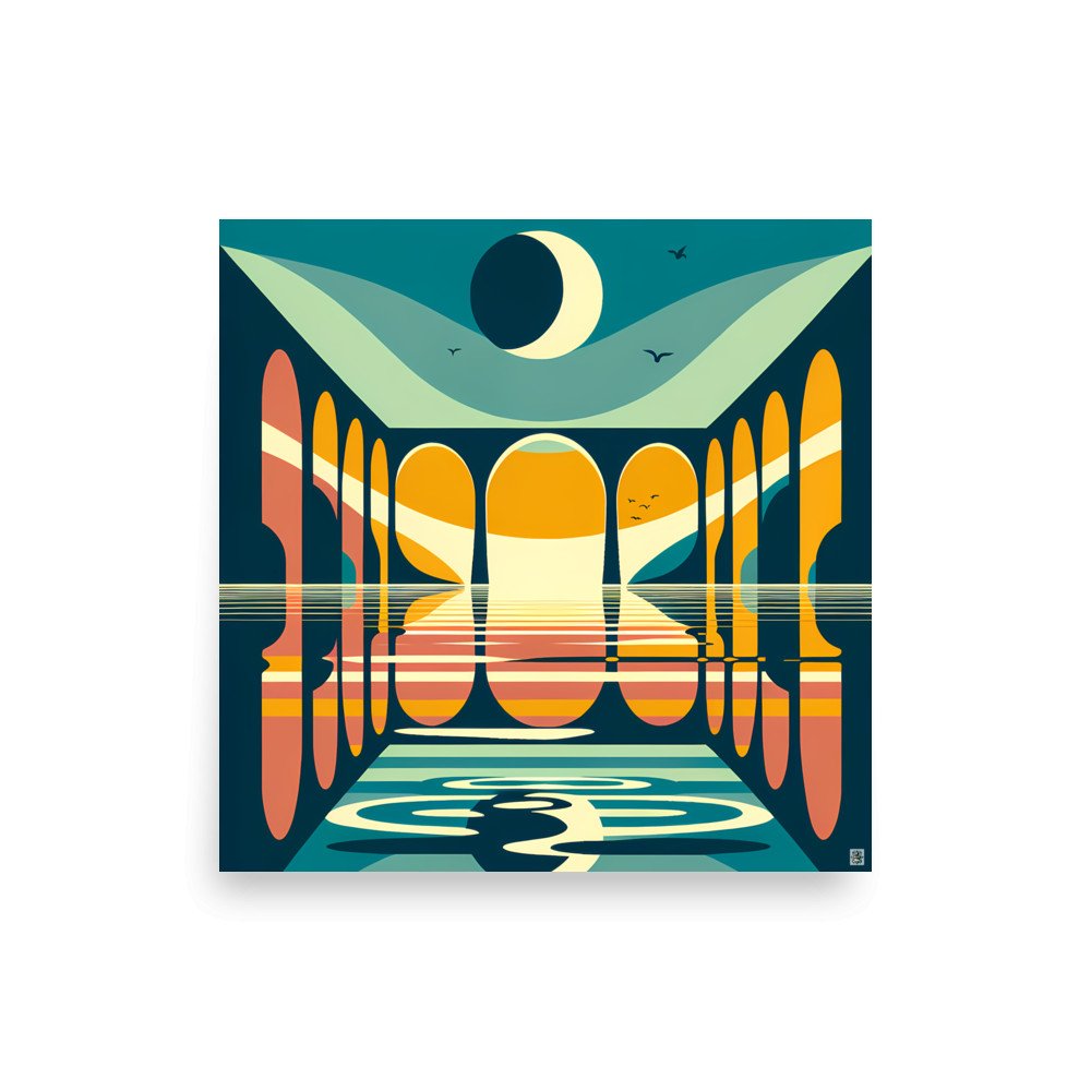 Twilight CorridorMoonlit Arches Over Reflective Water — Poster
