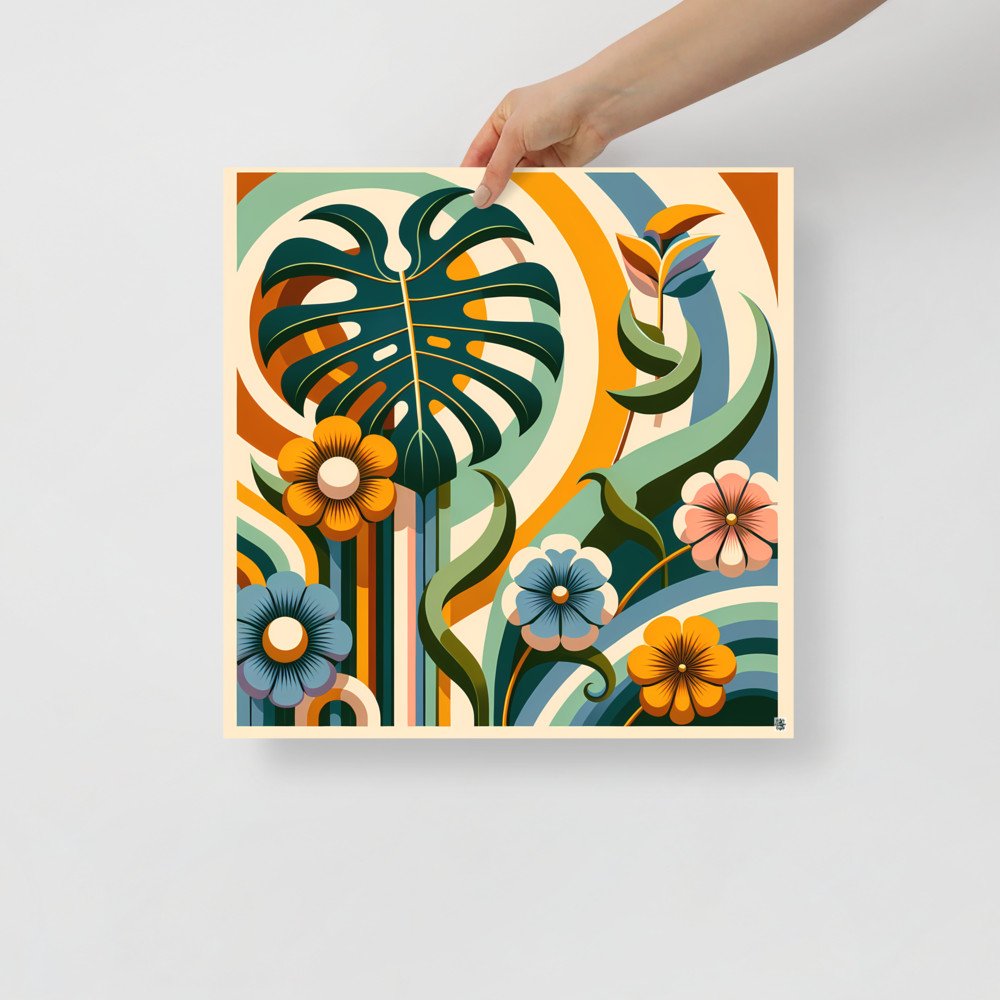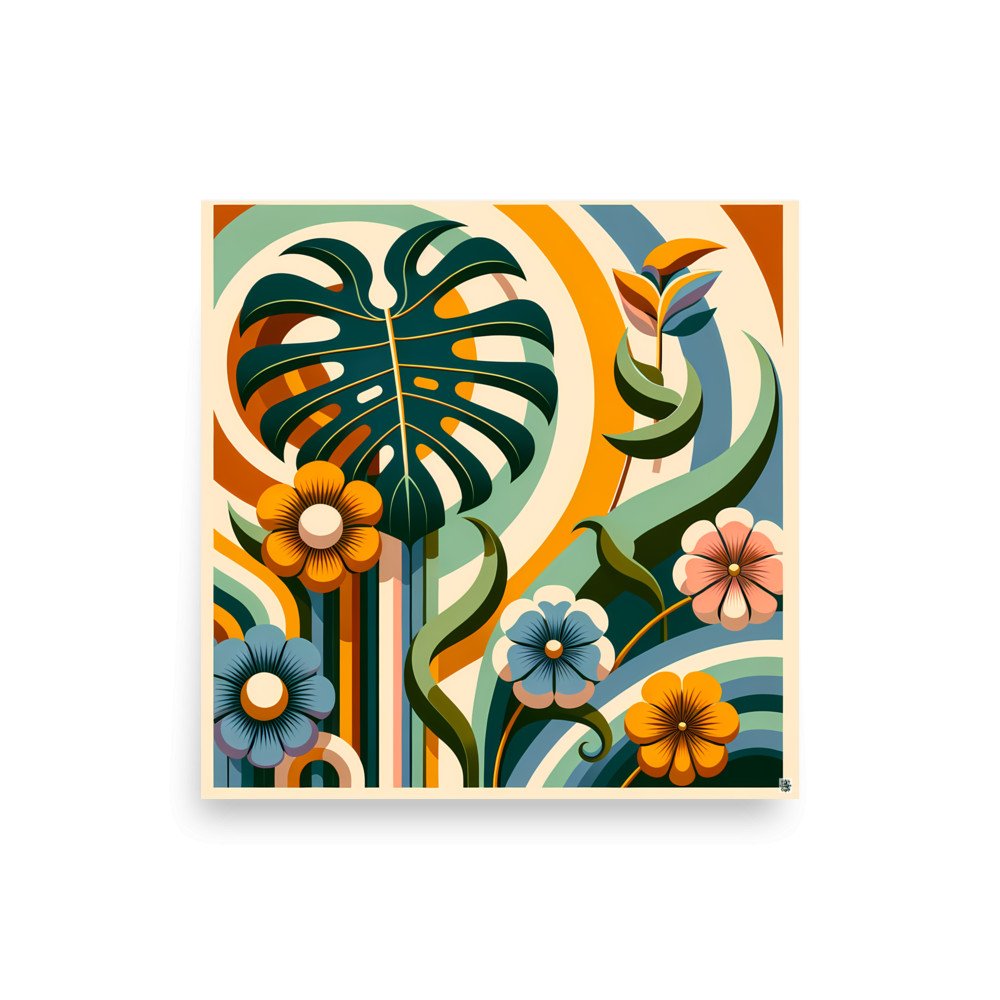 Saffron CanopyAbstract Botanical Leaves and Flowers — Poster