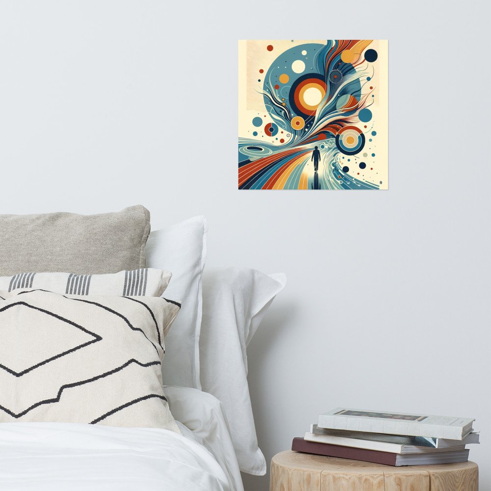 Retro Abstract Cosmic Swirls with Silhouette Figure — Poster