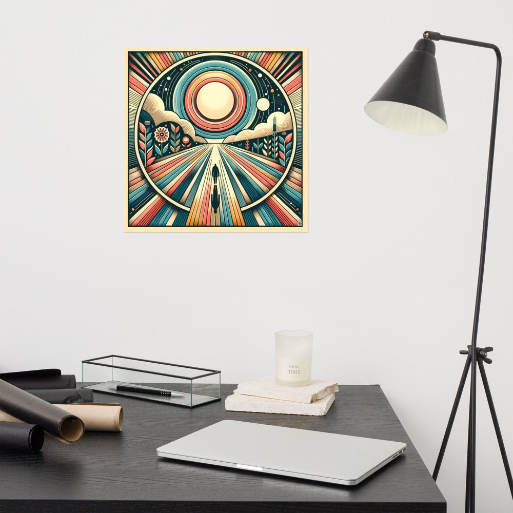 Luminous PathwayRetro Geometric Sunburst Landscape Art — Poster