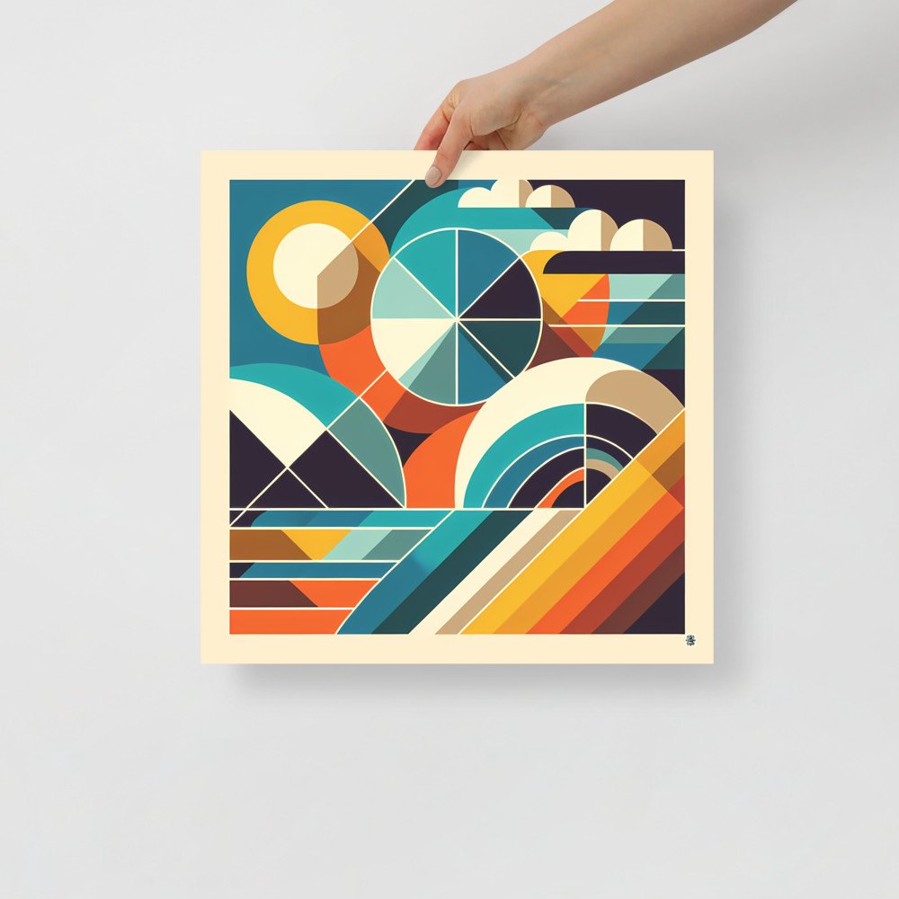 Retro Geometric Abstract with Teal and Orange — Poster