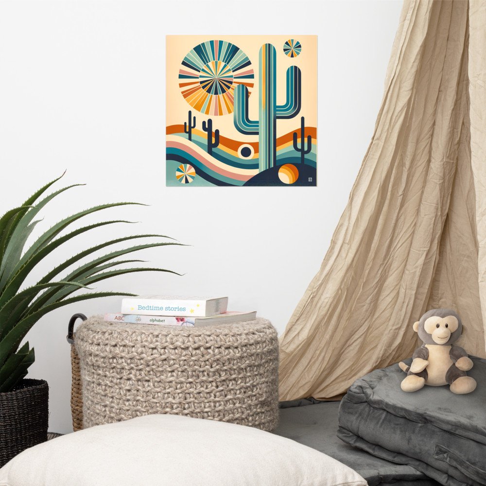 Retro Geometric Cactus Desert Scene — Poster