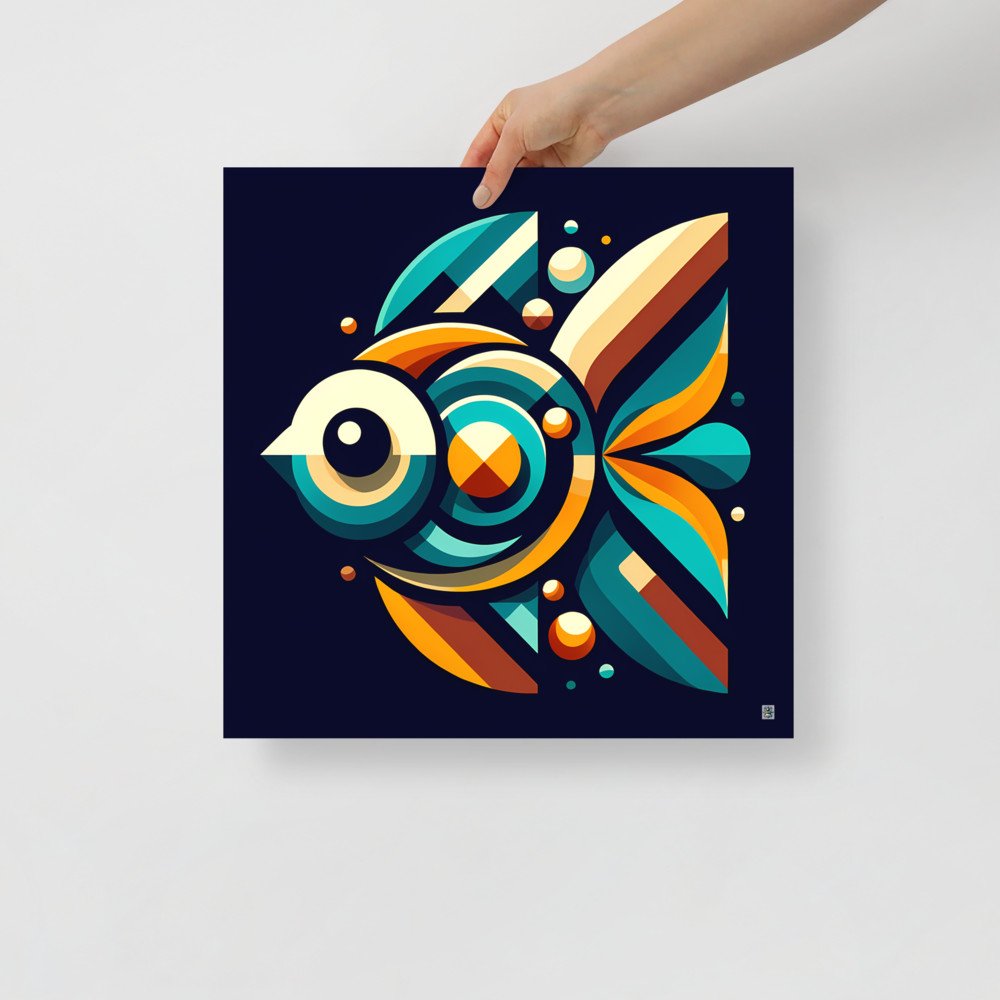 Retro Geometric Fish Illustration in Teal and Orange — Poster