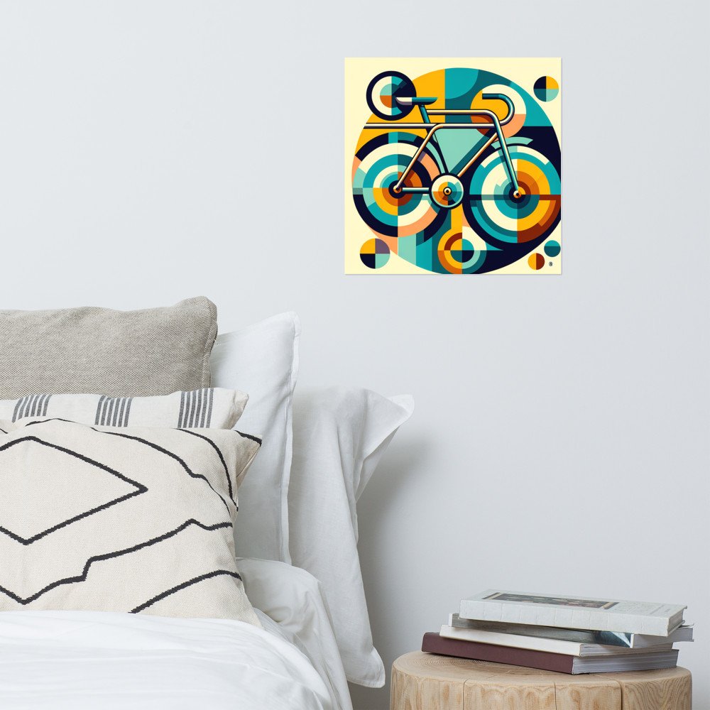 Cyclic AuraGeometric Retro Bicycle in Teal and Mustard — Poster