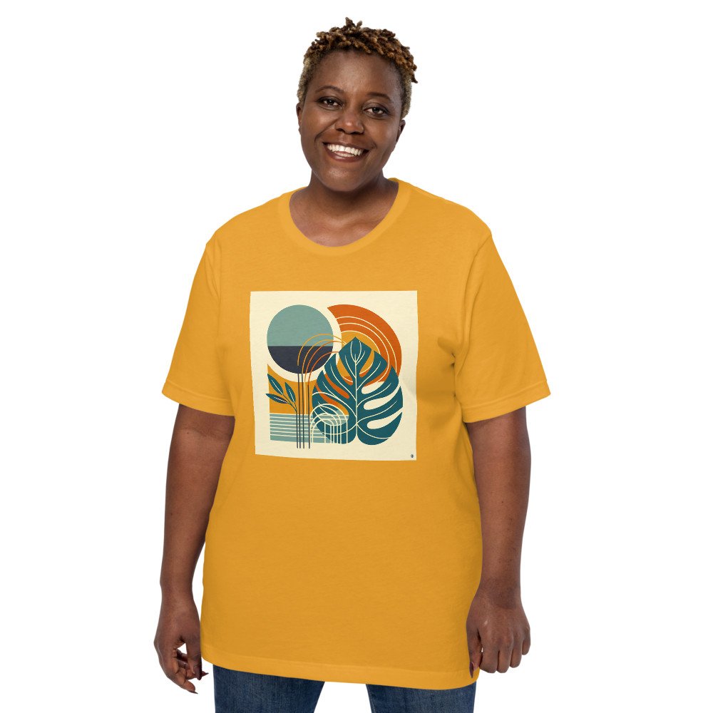Abstract Monstera Leaves with Geometric Sun Shapes — T-Shirt