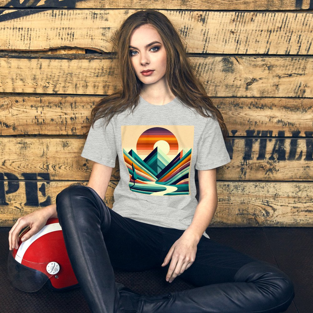 Geometric Mountain Sunset Landscape — T-Shirt