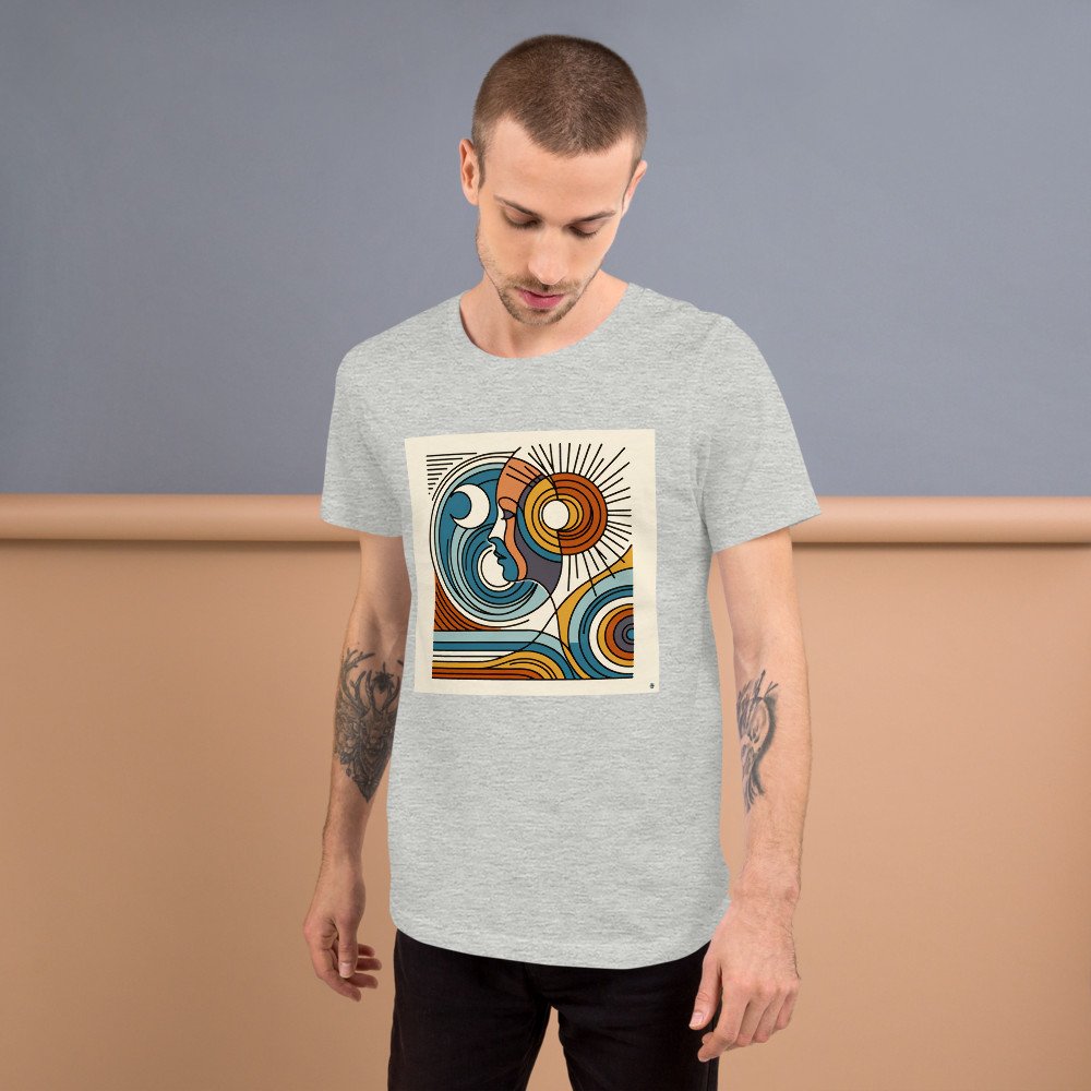 Abstract Line Face with Sun and Moon Waves — T-Shirt
