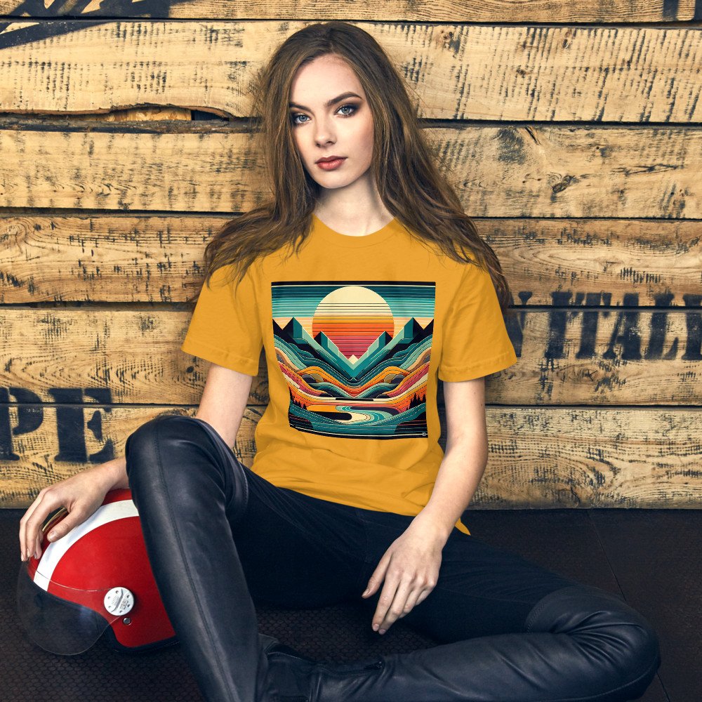 Canyon GlowGeometric Mountains Sunset with Layered Valley Lines — T-Shirt