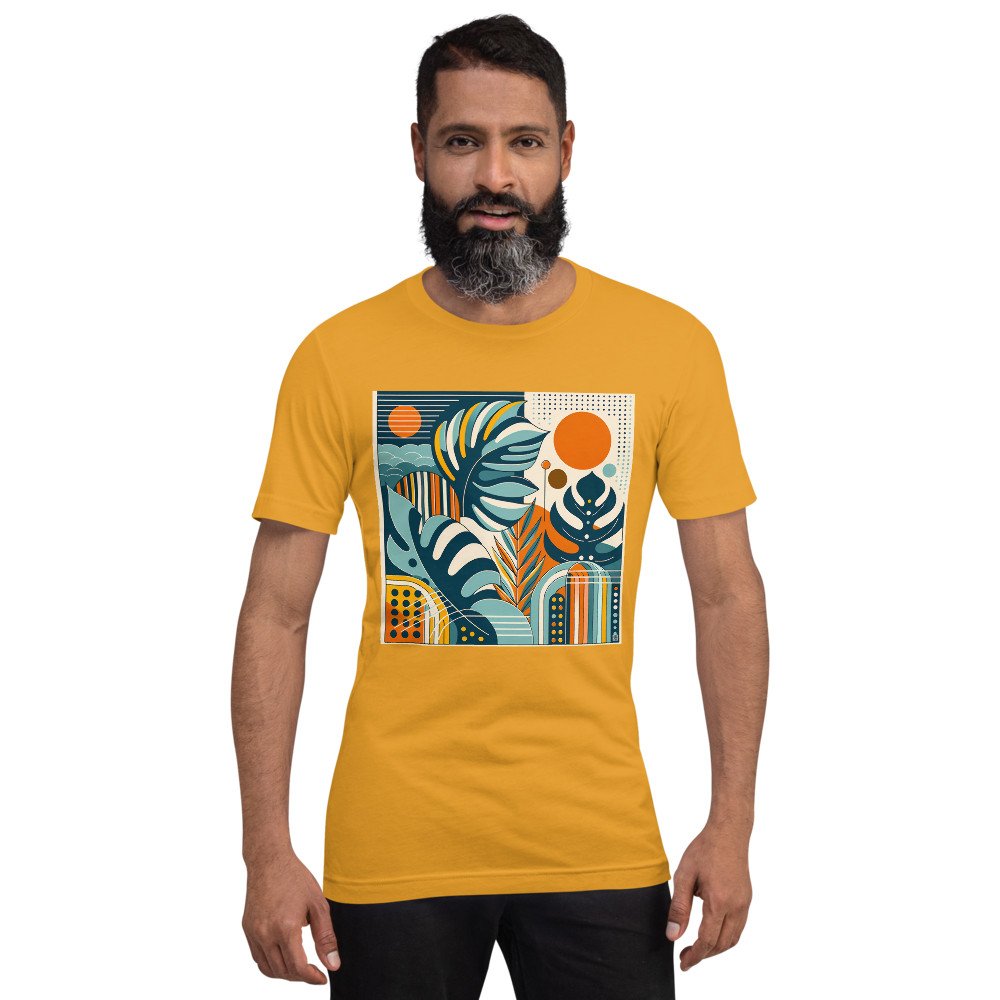 Abstract Botanical Leaves with Orange Sun — T-Shirt