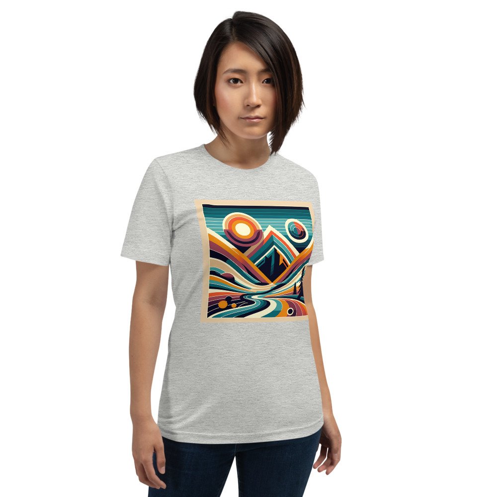 Pineway CrestGeometric Mountain Valley with Retro Sun — T-Shirt