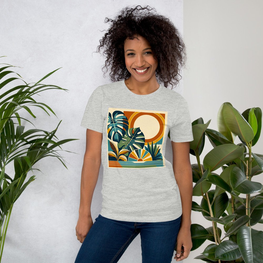 Abstract Botanical Sun and Monstera Leaves — T-Shirt