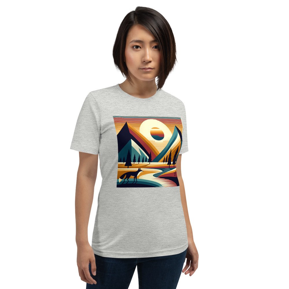 Ridgeway EmberGeometric Mountain Peaks with Fox and Sunset — T-Shirt