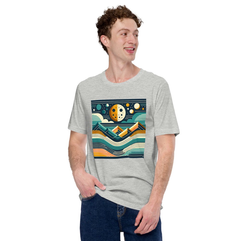 Teal Cypress IIIGeometric Moon Over Layered Mountains — T-Shirt