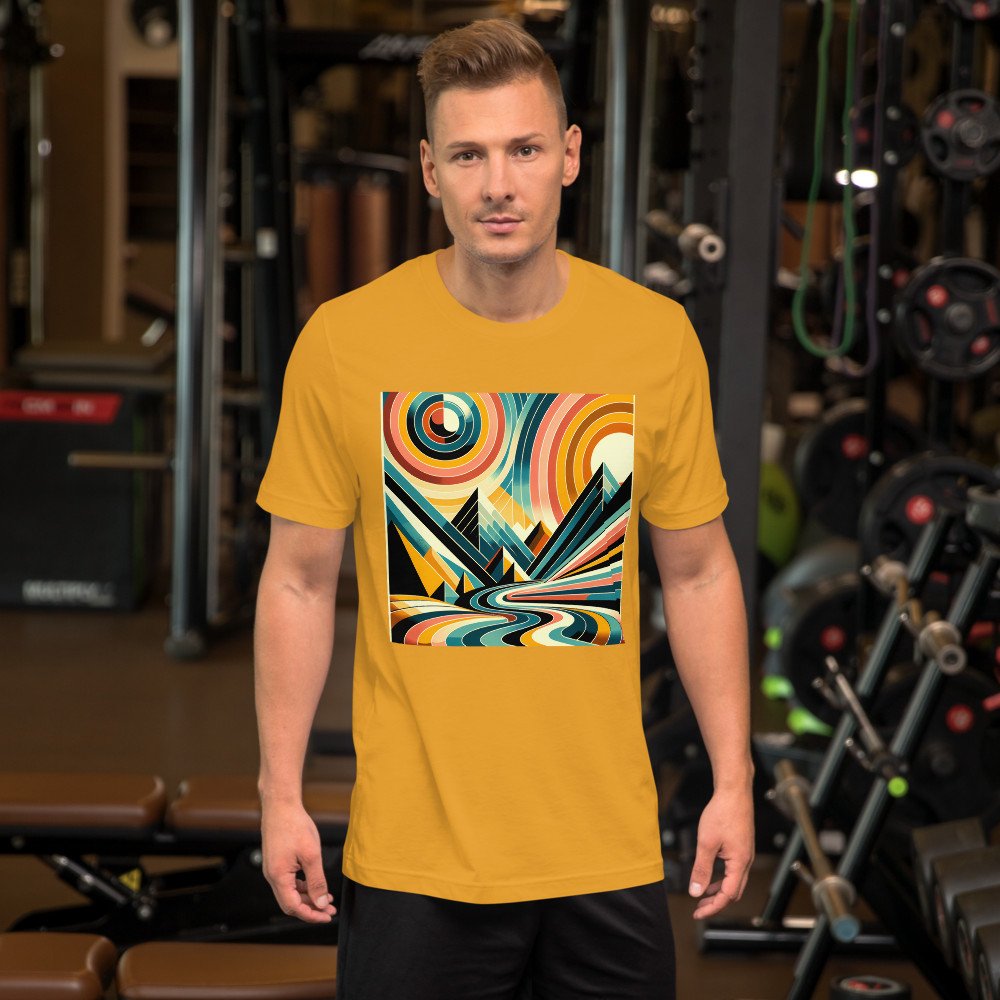 Geometric Mountain Silhouettes with Retro Sun Rings — T-Shirt