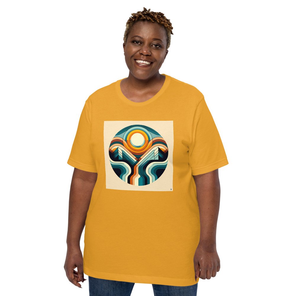 Geometric Sun and Mountain Contour Lines — T-Shirt